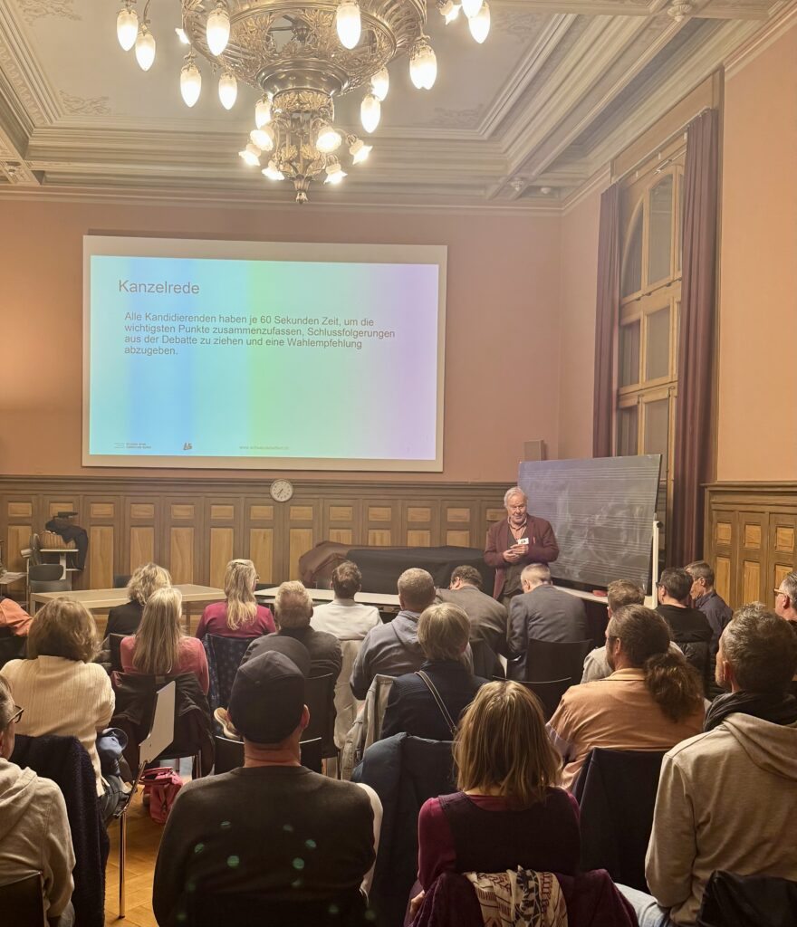 Die debattierenden Grossratskandidatinnen und Kandidaten bereiteten sich unter unserer Anleitung auf Inhalt und Format der Debatte vor.